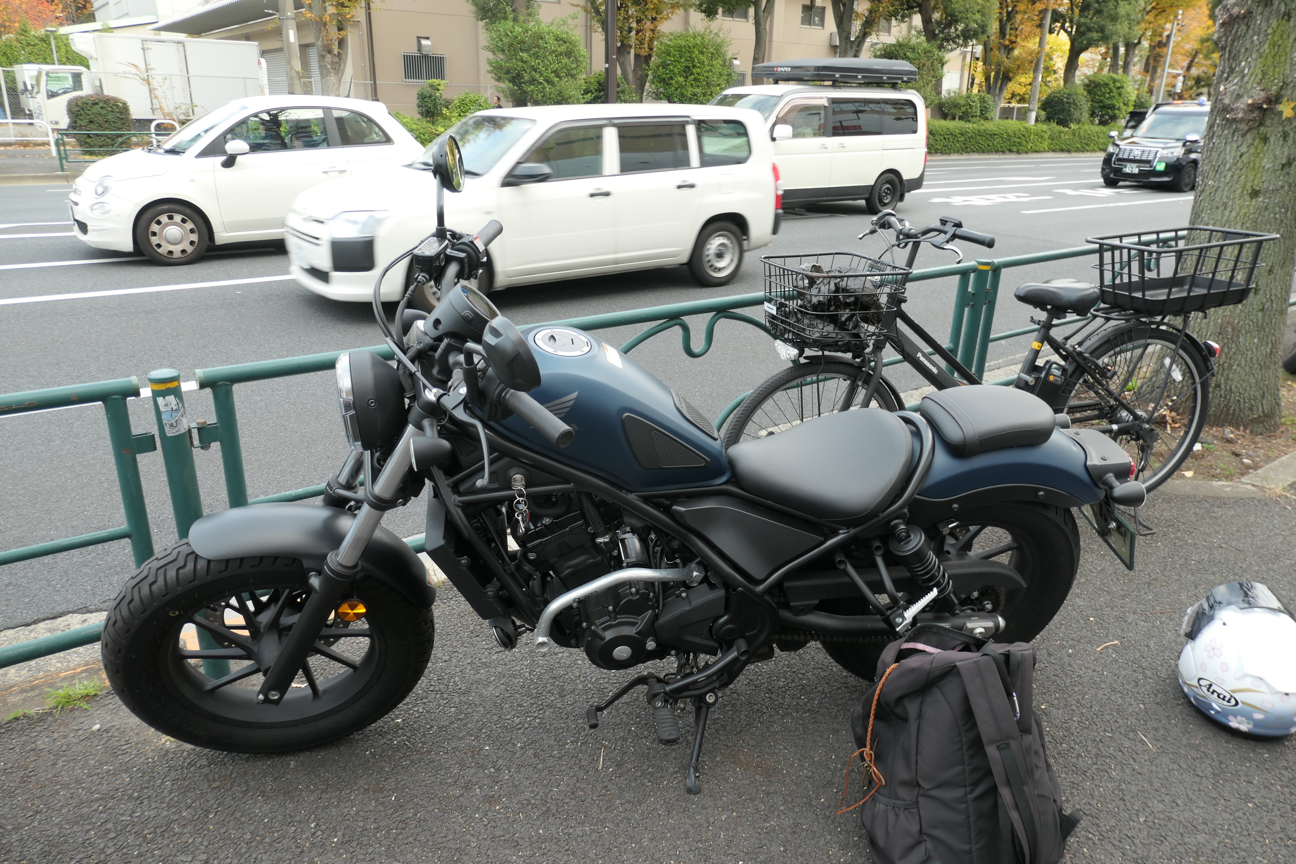 目的地に着いて、10分程度の用事を済ませて、またレブルんのもとに戻って、セルを押す。